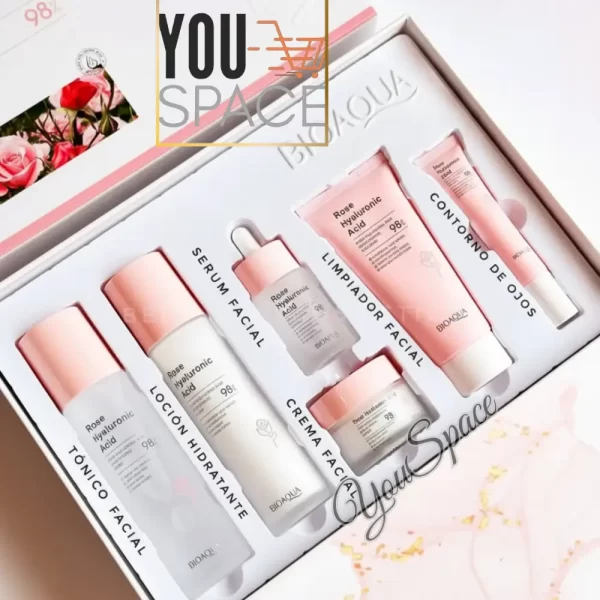 KIT FACIAL SKINCARE ROSAS Y ACIDO HIALURONICO 6 PIEZAS BIOAQUA