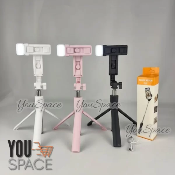 PALO SELFIE TRÍPODE 2 EN 1 INALÁMBRICO CON LUZ BLUETOOTH RECARGABLE