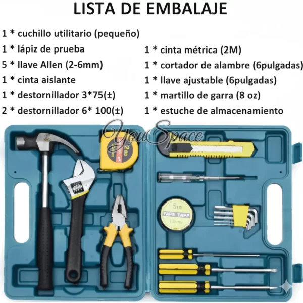 CAJA DE HERRAMIENTAS BASICAS PARA HOGAR 16 PIEZAS