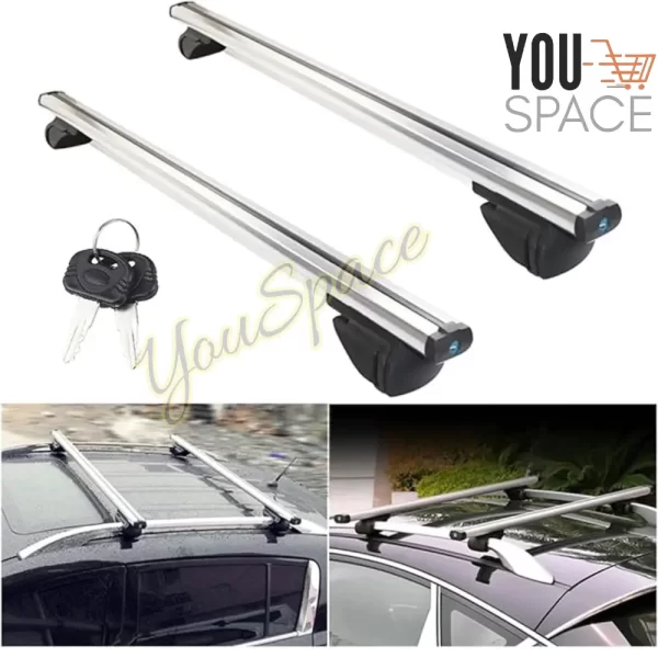 Deben ser barras laterales separadas del techo de tu vehículo. Se anclan en las barras laterales de tu auto. La distancia entre barras laterales tiene que ser menor a 108 cms.