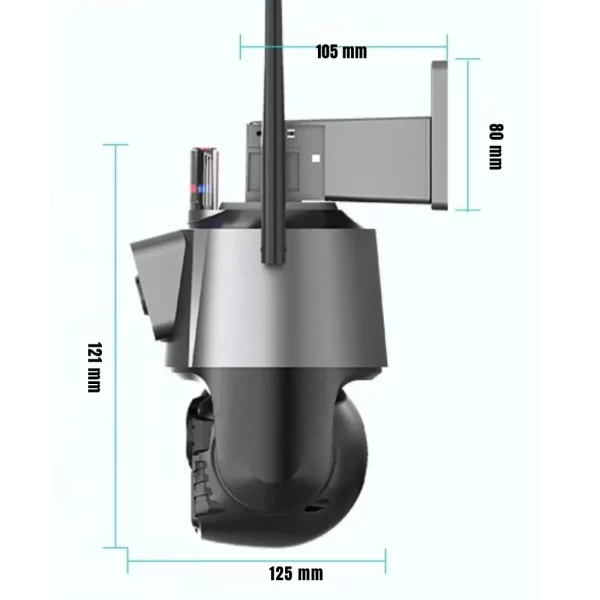 Su capacidad de movimiento motorizado PTZ permite un giro de 355° de izquierda a derecha y 90° de arriba hacia abajo, asegurando una cobertura completa del área monitoreada. Además, cuenta con visión nocturna a color y en blanco y negro, gracias a sus 11 luces infrarrojas y 12 luces LED. Compatible con dispositivos iOS y Android a través de la app V380PRO, esta cámara es ideal para quienes buscan seguridad avanzada y fácil acceso a sus grabaciones en cualquier momento.
