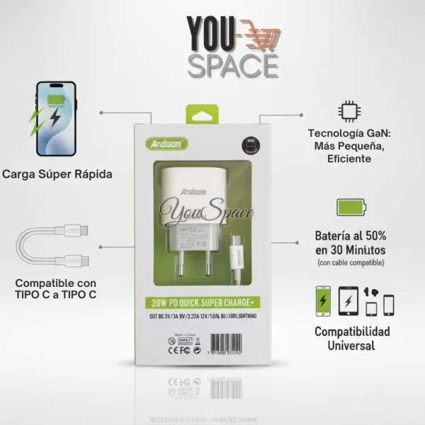 El cargador 20W PD Quick Super Charge+ es un cargador de pared con tecnología Power Delivery (PD) que ofrece carga rápida para dispositivos compatibles.