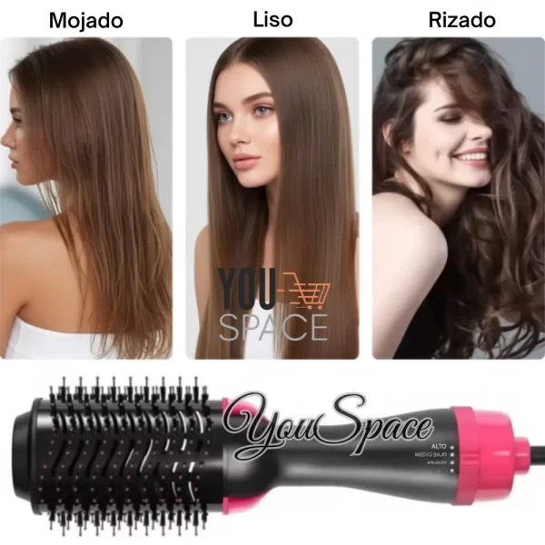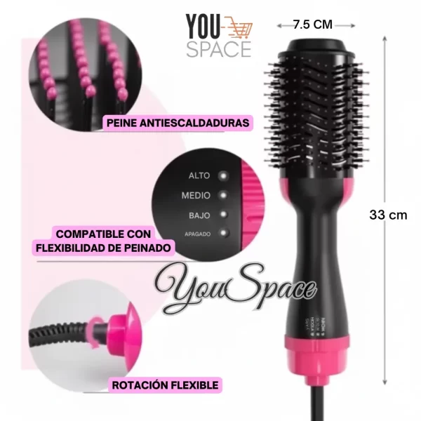 - Funcionalidad 3 en 1: Combina las funciones de un secador de pelo, cepillo y voluminizador.