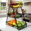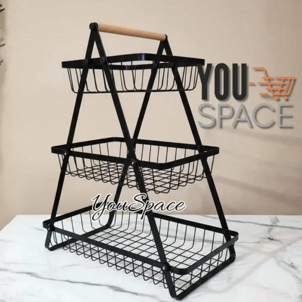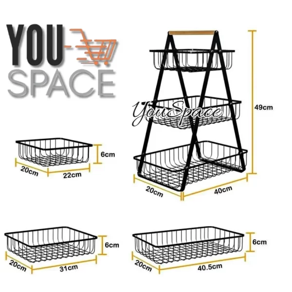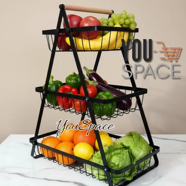 Esta cesta de encimera de 3 niveles está hecha de metal de alta calidad con mango de madera portátil. Es fácil de limpiar y montar, a prueba de óxido e impermeable. Diseño de estilo moderno y simple, se adapta a cualquier estilo y decoración.