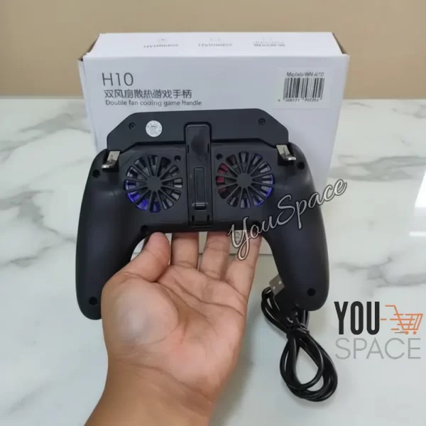 controlador de juego móvil (gamepad) modelo H10 con ventiladores de refrigeración integrados.