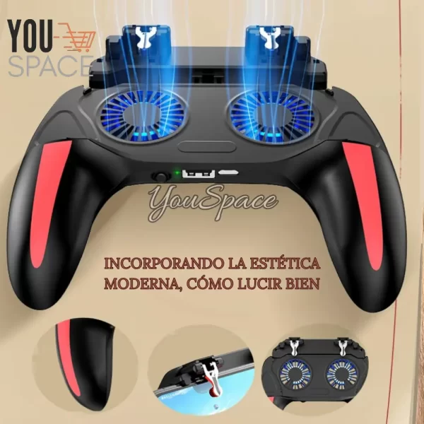 • Funcionalidad 4 en 1: Combina un gamepad, gatillos de juego (L1R1), un potente ventilador de enfriamiento y un banco de carga de emergencia.