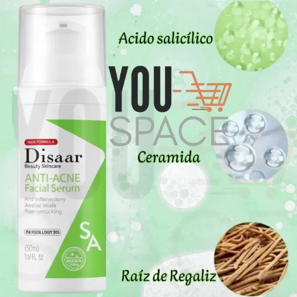 Disaar Anti-Acne Facial Serum: Este suero facial está diseñado para ser antiinflamatorio y antibacteriano, además de destapar los poros. Su fórmula concentrada ayuda a reducir las manchas y a prevenir futuros brotes de acné.