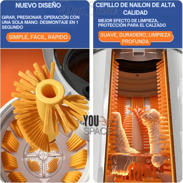 - Limpieza Eficiente: Utiliza un motor de alta velocidad y cerdas suaves de PA (nailon) para una limpieza profunda sin dañar la superficie de los zapatos. El cepillado es integral de 360°.