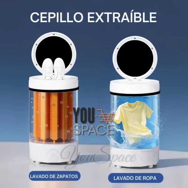 - Multifunción 3 en 1: Combina las funciones de lavado de zapatos, lavado de ropa y secado por centrifugado en una sola unidad.