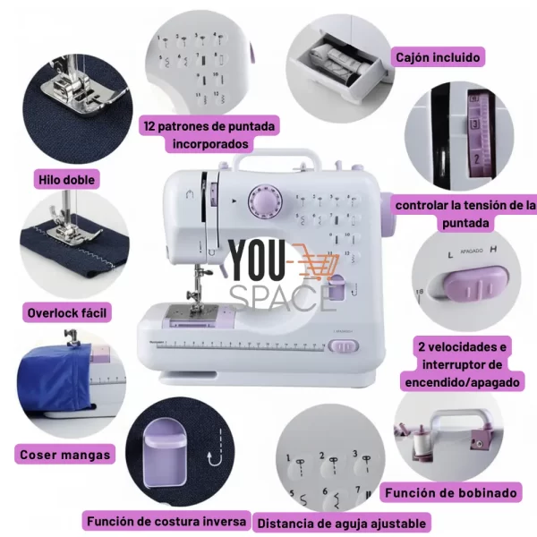 Máquina Portátil y Multifuncional de 12 Puntadas para Costuras