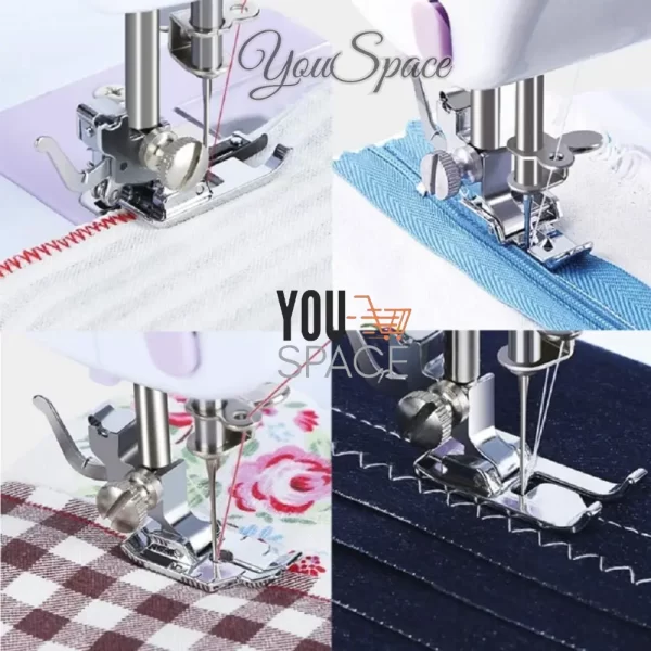 – Prensatelas reemplazable para usar otros tipos de prensatela. Ej: Costura de cremalleras