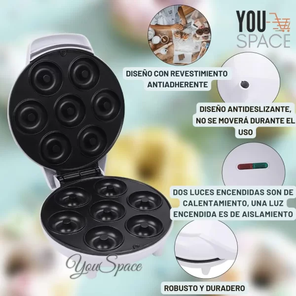 - Capacidad: Prepara hasta 7 mini donas a la vez.