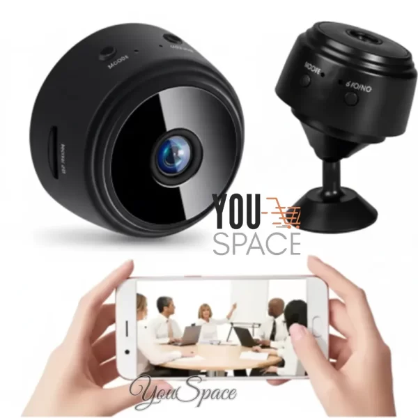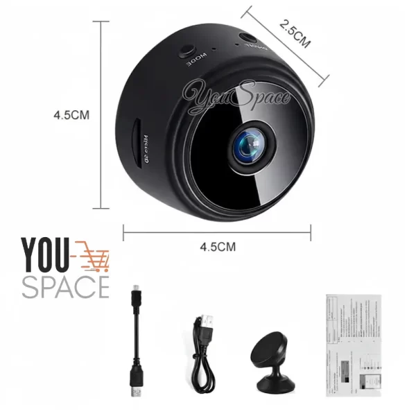 Mini cámara de seguridad espía inalámbrica HD 1080p Wifi en color negro.
