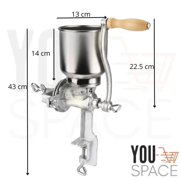 - Embudo de Alimentación: Dispone de un embudo superior donde se vierten los granos, lo que facilita la carga y asegura un flujo constante hacia el mecanismo de molienda.