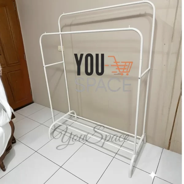 Este perchero metálico doble en color negro y blanco  es la solución perfecta para mantener la organización de la ropa en tu hogar lo que lo convierte en un elemento esencial para cualquier hogar