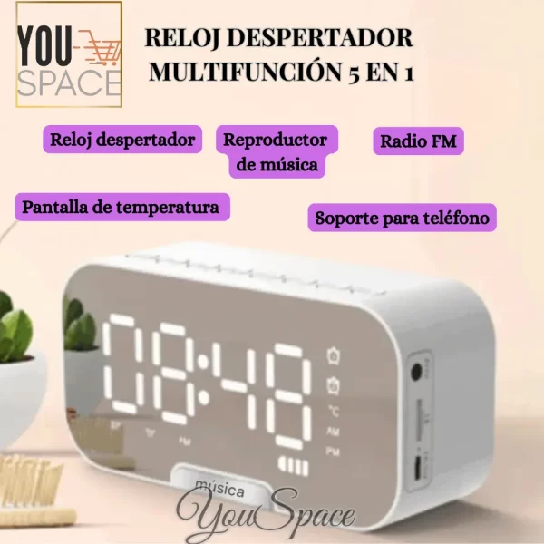 RELOJ DESPERTADOR PARLANTE DIGITAL LED PORTA CELULAR BLUETOOTH