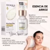 El sérum facial aclarante con extracto de arroz, contiene en el núcleo de la semilla del arroz (gérmen de arroz) y ácido hialurónico, que reducen drasticamente MANCHAS, BOLSAS, OJERAS. Y signos de expresión.