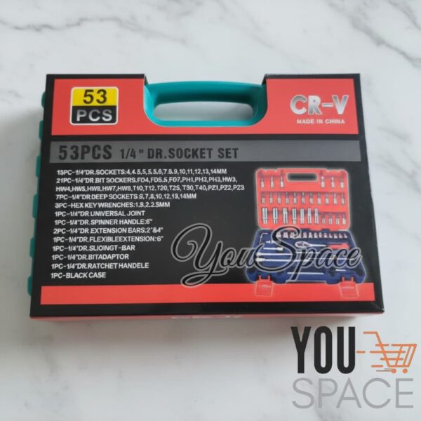 JUEGO DADOS CUADRANTE 1/4 PULGADA 53 PIEZAS CON MALETÍN DE TRANSPORTE