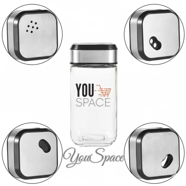 - Materiales: Los recipientes son de vidrio, con tapas y base de plástico y metal.