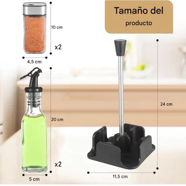 SET DISPENSADOR ACEITE VINAGRE SAL CONDIMENTOS VIDRIO Y ACERO