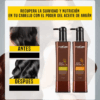 Repara y nutre: Formulado con Aceite de Argán y vitaminas A y E, este set combate los daños causados por los rayos UVA y UVB, restaurando la elasticidad y el brillo natural de tu cabello.