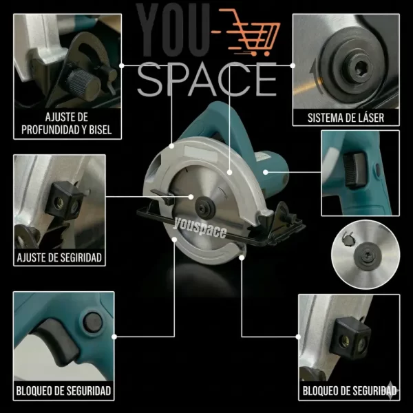 • Características destacadas: Incluye posicionamiento láser para mejorar la precisión del corte, mango ergonómico y guarda de seguridad ajustable