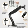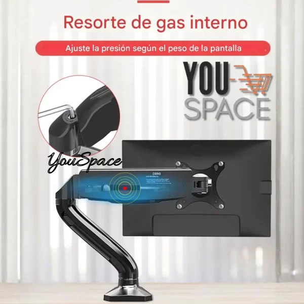 - Sistema de Resorte de Gas: Permite mover la pantalla con un toque suave y mantenerla firme en la posición deseada.