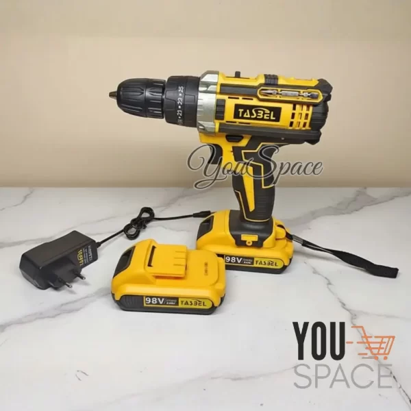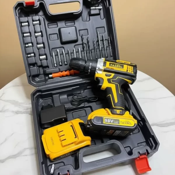 El Taladro Inalámbrico de 98V Tasbel es la herramienta perfecta tanto para profesionales como para aficionados. Con un potente motor y una batería de larga duración, es ideal para perforar, atornillar y realizar todo tipo de trabajos en madera, ladrillo, cerámica y más, sin cables ni limitaciones.