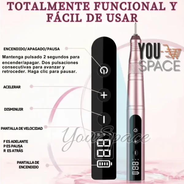 El torno de uñas inalámbrico profesional Nailstar tiene las siguientes características y especificaciones principales: