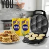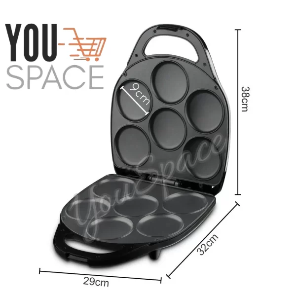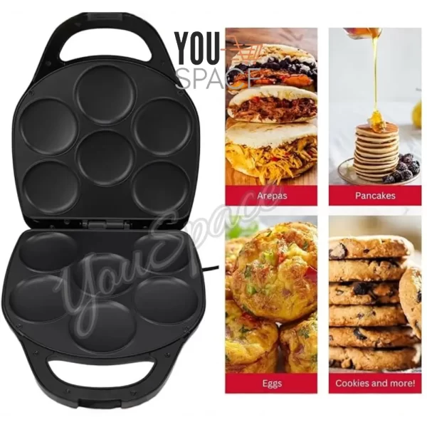 Este práctico electrodoméstico es el complemento perfecto para cualquier cocina, ideal para desayunos, postres rápidos o meriendas divertidas. Su diseño compacto y eficiente te permite cocinar hasta 6 unidades a la vez, con una forma redonda perfecta para AREPAS, MUFFINS, PANCAKES, ENTRE OTROS
