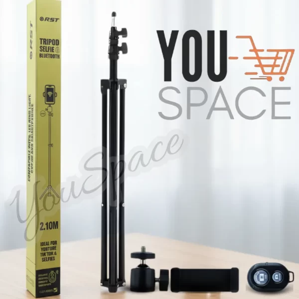 Trípode RST, perfecto para aficionados y profesionales por igual. Con una altura impresionante de 2.10 metros, este trípode te permite capturar imágenes desde perspectivas únicas. Equipado con control Bluetooth, facilita la toma de fotos y videos a distancia, mientras que su capacidad de rotación de 360° asegura tomas perfectas desde cualquier ángulo. Producto en caja.